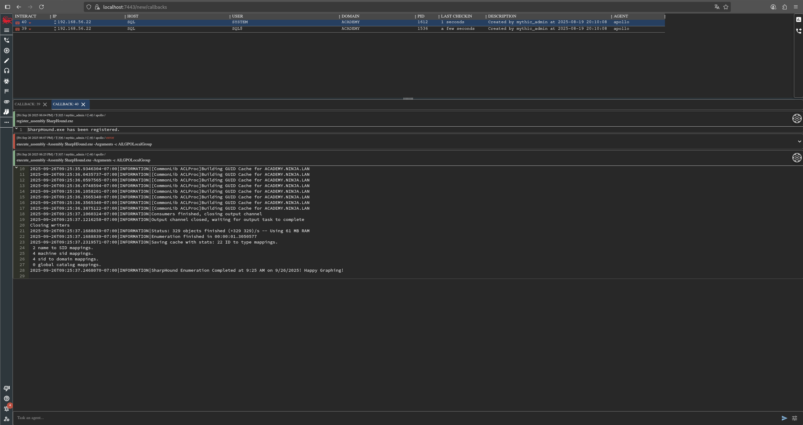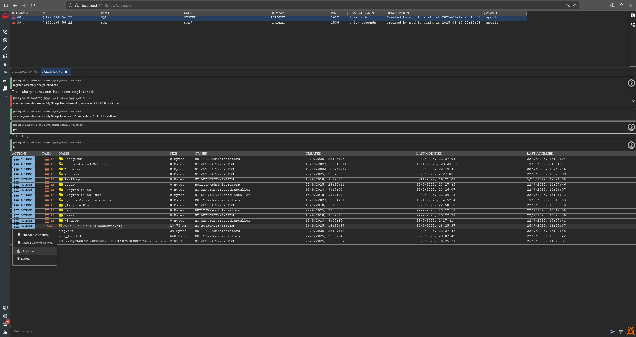 Una de las tareas más importantes a la hora de ejecutar un pentesting en un entorno de active directory, es obtener la data de bloodhound, para poder enumerar en condiciones todo el entorno. Para ello, es posible ejecutar en memoria SharpHouind.exe desde Mythic, que nos proporcionará lo que necesitamos.