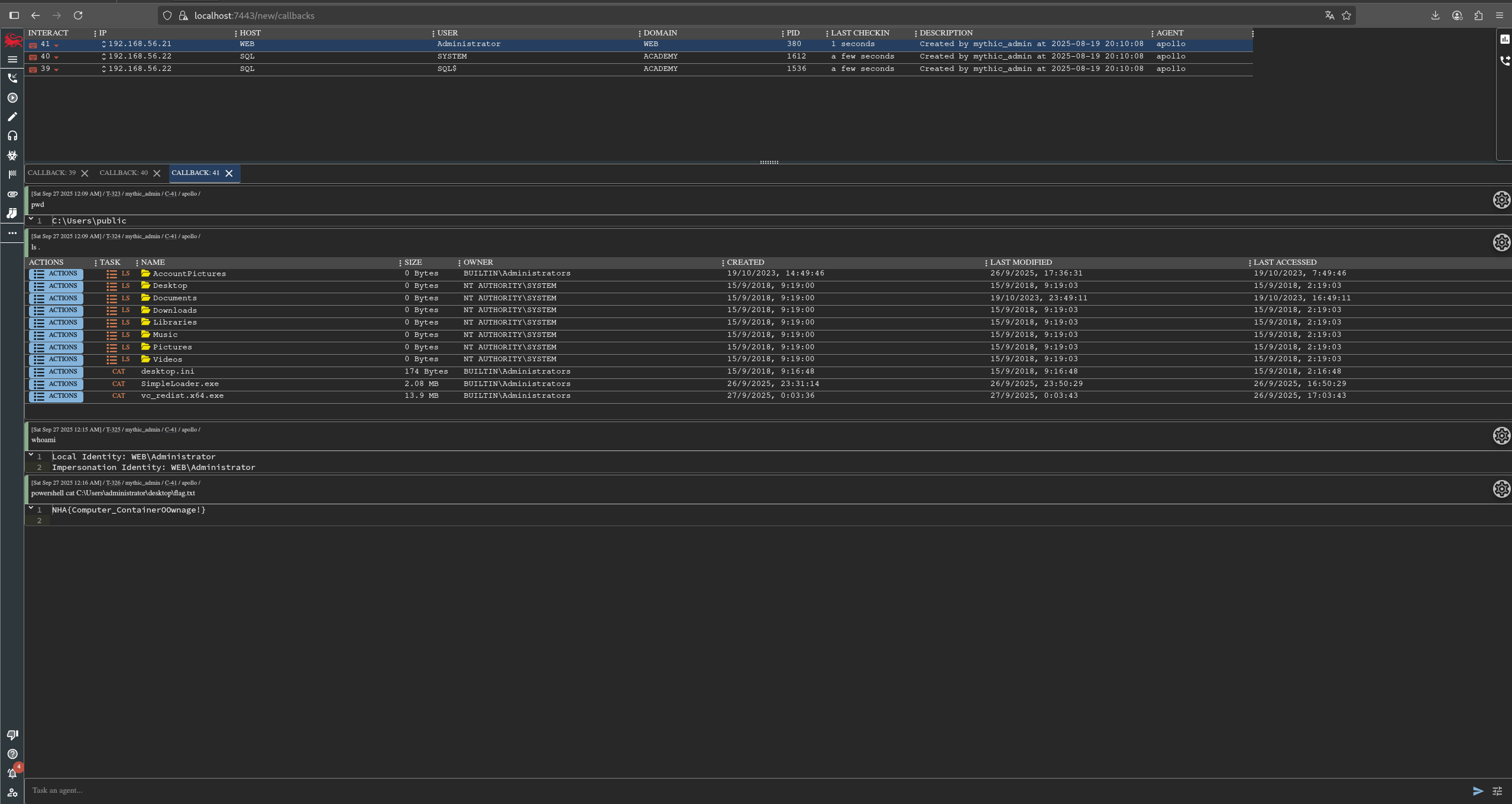 A continuación podemos conectarnos con evil-winrm, ejecutar nuestro loader para recibir el beacon en mythic y leer la flag.